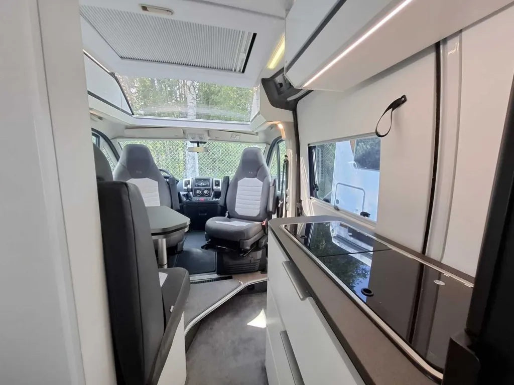 Uudehko retkeilyauto on ketterä, taloudellinen ja mukava ajettava. Rekisteröity 4:lle, mutta makuupaikat optimaalisesti on kahdelle aikuiselle ja yhdelle lapselle. Autosta löytyy 140 hv moottori, automaattivaihteet, asuntilan ilmastointi laite ja muutenkin kattava varustelu. Kompaktiin kokoonsa nähden autossa on maksimoitu asuinmukavuus ja esim. keittiöstä löytyy kaikki mahdollinen mitä ruonlaittoon tien päällä tarvitaan.