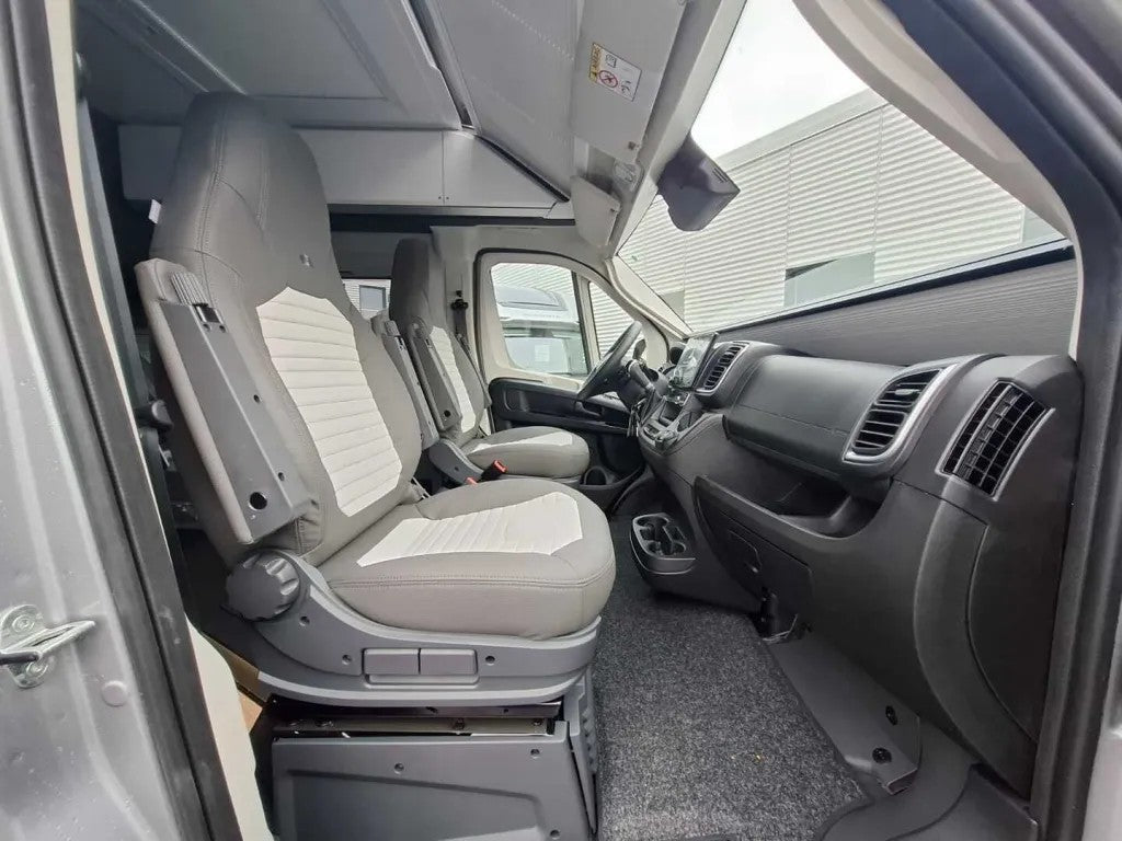 Käsinojalliset ja käännettävät kuljettajan ja apukuljettajan mukavuusistuimet, kuljettajan istuin korkeussäädöillä